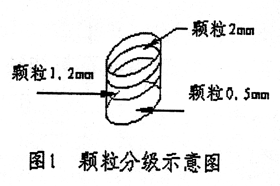 現(xiàn)場(chǎng)使用的分級(jí)篩的篩孔分別為2mm、1.2mm和0.5mm三種,篩分時(shí)把篩孔尺寸最大的篩合放最上層,篩孔尺寸最小的篩合放最下層,如圖1。其底合專(zhuān)為篩分時(shí)裝接細(xì)粉之用。